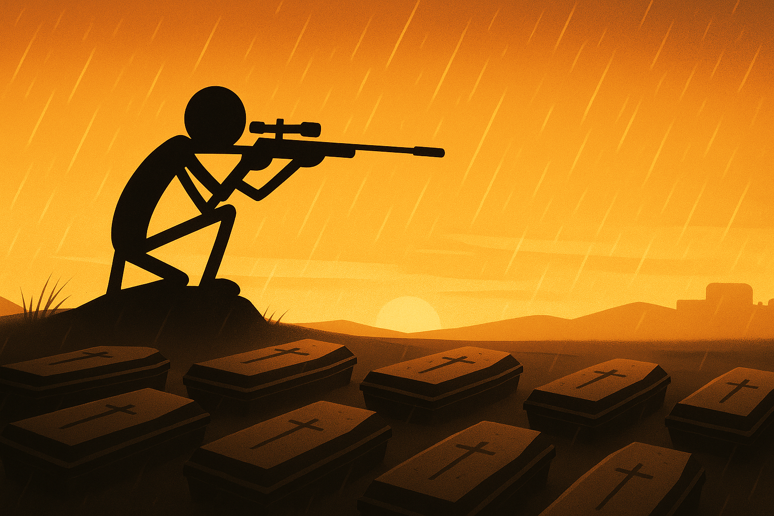 Enemy snipers, furious over their fallen comrades, are said to be regrouping. Some were spotted pacing rooftops, while others were seen crouched in dark alleyways, loading fresh rounds and whispering to one another. Their rage has continued to boil. But they’re not rushing in. This time, they’re watching from the shadows, waiting for the perfect opening. Word is, they’ve been drawing maps, building lookout posts, and sharpening their aim, all under the veil of a sunset that feels more like a warning than a view.